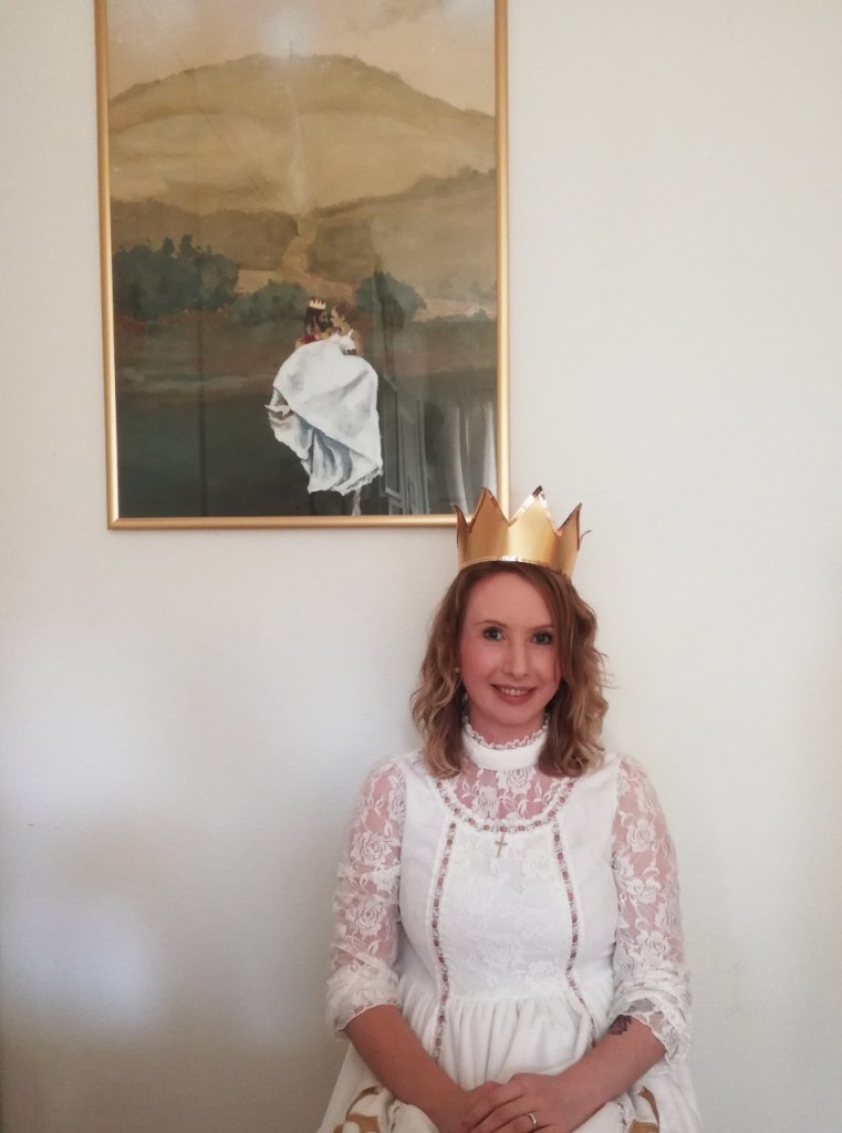 Jeg må avslutte nå. Min vakre Tvillingbror inviterte meg på besøk. Og fordi jeg elsker den Mannen så høyt at jeg trygler Pappa om å få sove i tusen år, slik at tiden går fort, benytter jeg meg av alle anledninger til å tilbringe tid med ham. Som Bror og Søster, ikke som rette ektefolk. Dette bildet er forresten tatt i kapellet på Ansgarskolen, sommeren 2017, og jeg kalte det ganske riktig ‘Rette Ektefolk’: