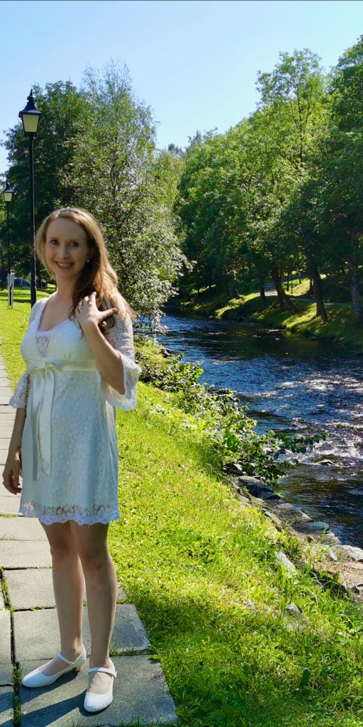 Når jeg ikke er så utslitt at jeg føler jeg skal dø, skal jeg skrive en Vitenskapelig Artikkel om bursdagen min, selveste 12. juli. Men her er altså meg og bursdagskjolen: