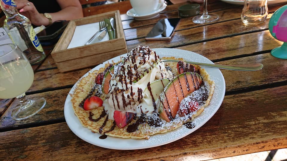 Etter noen timer kom Alex og plukket meg opp hos Joey. Vi dro hjem til meg, så jeg fikk skiftet og summet meg litt, før feiringen skulle begynne. En søt venninne kom til meg, og sammen kjørte vi til Bærums Verk og Pannekakehuset. Ja, jeg trenger kanskje ikke å nevne at bursdag kalles ‘Kakedag’ i min bok, og at pannekaker både til frokost og til middag er helt innafor – når du er en femåring som tilfeldigvis fyller 33 år? På Pannekakehuset møtte vi min russiske familie, og det ble god mat, god stemning, gaver og masse prat. Her er Alex med sin pannekake, og jeg som fortsatt er sulten: