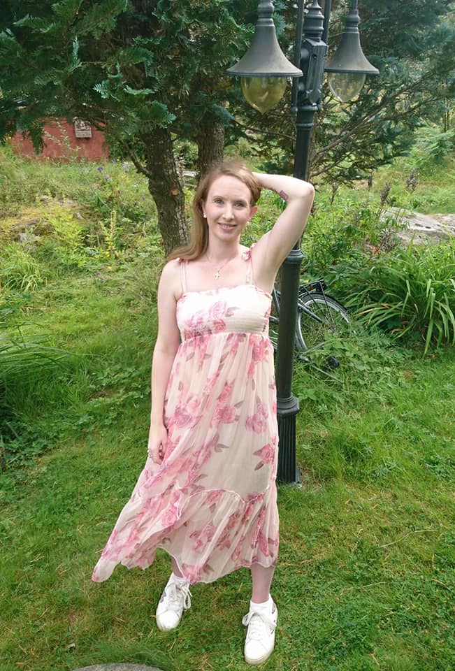 Jeg var på plassen jeg kaller ‘Narnia’ i går. Dette er egentlig hjemmet til min jordiske mor, som ligger en kort kjøretur unna hytten til familien min. Det er jeg og Alex som er på hyttetur, og vi koser oss veldig. Grunnen til at vi var innom moren min sin hytte, er fordi det ikke er en dusj på familiehytten. Så derfor får vi låne dusjen hjemme hos moren min. Vi dusjet, og jeg fikk på meg en fin kjole. Så måtte vi ta de obligatoriske bildene med lyktestolpen i hagen. Å ta en dusj, sminke meg og tørke håret, i tillegg til å ta disse bildene, var alt jeg klarte før jeg måtte forlate Narnia. Det var ikke godt for meg å være der, men jeg må jo dusje. Nå skal det heldigvis bygges en ny hytte på tomten vår, ved siden av den som allerede er her. Og der kommer det både innlagt vann og dusj.