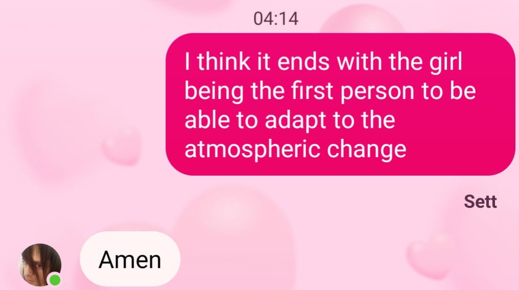 Jeg så en film i natt, som kan kategoriseres som post-apokalyptisk. Det som hadde skjedd med Jordkloden var at atmosfæren var blitt giftig, og alt var begynt å dø ut. De menneskene som ikke var døde, hadde dratt til en romstasjon ved siden av én av Jupiters måner. Der skulle de være i påvente av en ekspedisjon mot en eksoplanet, altså en jordliknende planet hvor de skulle slå seg ned – og sikkert ødelegge den også. Unnskyld, jeg har ikke høye tanker om den menneskelige natur. Poenget er at hovedpersonen i filmen, en ung forsker, var fast bestemt på at det var mulig for både dyr og mennesker å kunne tilpasse seg dette nye, giftige miljøet. Og når de fleste menneskene på jorden hadde flyktet, møtte hun en mann som kom i luftballong for å oppsøke faren hennes. Faren var også en forsker, og han hadde oppfordret så mange mennesker som mulig til å bli på jorden. Fordi han også hadde trodd at det skulle være mulig å tilpasse seg, og skape et nytt liv for menneskeheten i dette nye miljøet. Jenta i filmen fulgte opp det faren hadde forsket på, og hun oppdaget ganske riktig at enkelte insekter hadde klart å tilpasse seg – og overleve i en atmosfære som, etter det jeg forstod, hadde masse ammoniakk i seg. Så da jenta tok av seg gassmasken sin i et veldig giftig område, uten å dø, ble hun et bevis på at det var håp for videre liv på jorden. Jeg ble veldig glad da jeg oppdaget tidspunktet for når jeg hadde skjønt at det var dette som kom til å skje – og jeg fortalte det til Enrique. 04:14. Dere som har lest Bloggen min lenge, vet at jeg anser tallet 414 for å være mitt tall. Det er mange grunner til det, men én av grunnene er hva som står i Ester 4:14. Dette er en av to bøker i Bibelen som omhandler en kvinne. Hun redder på mange måter Israelsfolket fra utryddelse. Se:
