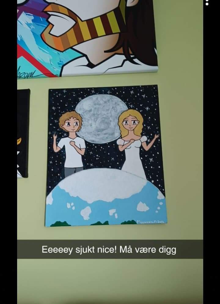 Men selv om deler av jobben min er skikkelig frustrerende, så synes jeg livet er kulere enn det har vært noengang før. Da jeg ble kjent med den andre bestevennen min, han som heter Alex, fortalte han meg at Apokalypsen i bunn og grunn handler om at balansen mellom den maskuline og den feminine energien i Universet skal gjenopprettes. Alex sa også at selv om [hyrdene] skremmer oss med at verden bare blir varmere og varmere, så har Gud helt andre planer. Alex fortalte meg at sjansene er store for at vår planet beveger seg i rekordfart mot en ny istid. Og fordi jeg var fullstendig besatt av Alex på den tiden, malte jeg et hellig bilde av meg og ham som helbreder verden ved å få [helvete] til å fryse til is. Broren min sendte meg denne snappen her om dagen, fordi han også mener at helvete trenger å kjøle seg ned mange hakk. Ja, han lå på sofaen min og tok bilde av veggen min, men sendte likevel snappen til meg også. Noen ganger unngår han å sende snapper til meg, som ‘alle andre’ får. Vi kom frem til at det sannsynligvis er ut av respekt for meg. Men jeg skal ikke utdype – ut av respekt for ham. Dette er hvertfall Broren min, som muligens er Jesus, sine ord om istiden som kommer: