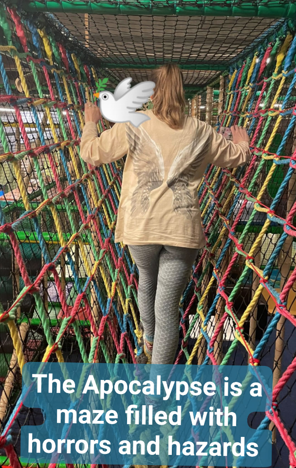 Jeg kjenner mange som er helt enig med de ‘mørke’ kreftene; de som ønsker store deler av verdens befolkning utryddet. De ønsker selvsagt ikke å være blant de som faktisk blir utryddet, men de kan se at planeten vår lider under menneskers behandling av den. Vårt overforbruk, vår urettferdige fordeling av ressurser, hvordan vi erstatter store naturområder med industri – for å tjene mer penger. Jeg, og mange andre, skjønner godt hvorfor noen mener ting trenger å forandre seg. Å sitte her, litt på sidelinjen, og vite at 1) jeg er bankers, og 2) alt dette må skje, gjør at jeg bare betrakter endetiden som et fascinerende eventyr. Da Apokalypsen begynte, i 2020, opprettet jeg et album på Spotify. Jeg kalte det bare Apocalypse 101. Den aller første sangen Gud ba meg legge til, heter I’ll Keep You Safe, og inneholder blant annet disse strofene: “Darkness will be rewritten into a work of fiction, you’ll see”. En annen strofe går slik: “Like a clockworker fixes time, by keeping the gears in line”. Så var det veldig søtt at akkurat da jeg oppdaget denne sangen, var det en flott kvinne jeg kjente online som sendte meg dette bildet: