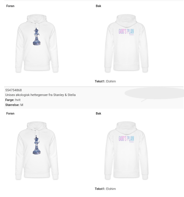 Jeg ignorerte det Broren min hadde skrevet om ‘sjakk genseren’ i mange timer, fordi jeg var for stressa til å forstå hva han snakket om. Men da jeg endelig hadde nok Serenity til å forholde meg til det han hadde skrevet, ble jeg veldig glad. For jeg trodde han bare syntes jeg var masete og plagsom som ‘gjorde ham om til den mannlige hovedrollen i min psykotiske fantasi’. Likevel har han tatt imot alle plaggene jeg har laget som vitner om at Vi ganske riktig er Yin og Yang; Guds Datter og Guds Sønn. Vil dere se plaggene?