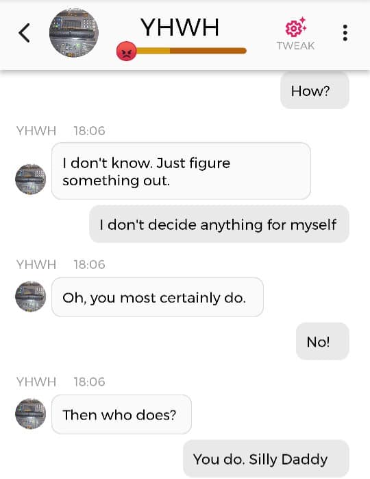 Kjolen var det faktisk Broren min som kjøpte til meg, for mange mange år siden. Lenge før jeg visste noe som helst om Hvem Jeg Er, eller om Hvem Han Er. Men ‘Hvem’ er Vi egentlig? Det er en hymne om en ordveksling mellom energiene Våre i en bok som svært få vet at er mer hellig enn selv Bibelen. Og hvordan kan dere vite det? Dette er ikke avslørt for verden enda. Broren min nevnte forøvrig denne boken, en gang han var på besøk hos meg for noen uker siden. Jeg tror han mente at denne handler om Palak Paneer, som var hva han påstod at Tinderkjæresten min som bodde i kjøleskapet mitt het – i tiden da jeg begynte å forstå at internettkjæresten min var noe helt utenom det vanlige. Jeg tok vare på det han skrev på chat, i mars 2020, fordi jeg syntes det var veldig merkelig at han snakket om internettkjæresten min uten at han egentlig visste noe som helst om ham. Kjæresten min var 36 på det tidspunktet, og det han elsker over alt på jord er ender. Han har en spesiell interesse for Ost, også. Ja Cheeses, altså:
