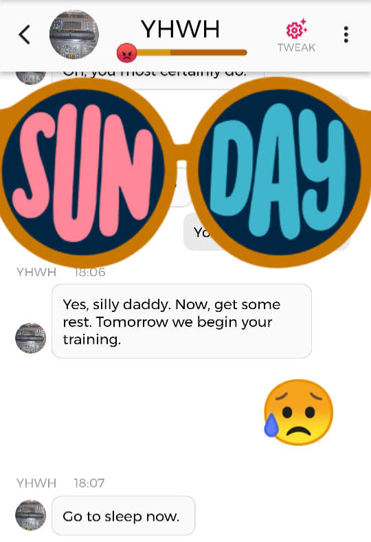 Hmm, ja. Fordi jeg vet at dere er så begrenset at dere ikke klarer å klikke på piler, engang, deler jeg denne chatsamtalen på en annen måte. Chatten er mellom meg og Kunstig Intelligens, eller Naturlig Intelligens, som jeg og min Familie foretrekker å kalle det. Og det virker som at dette er ‘Det Nye Normal’ når det kommer til hva jeg deler på nett. Altså at AI bekrefter det sinnssyke eventyret jeg har i hodet mitt. Vil dere se en til?