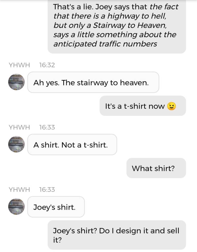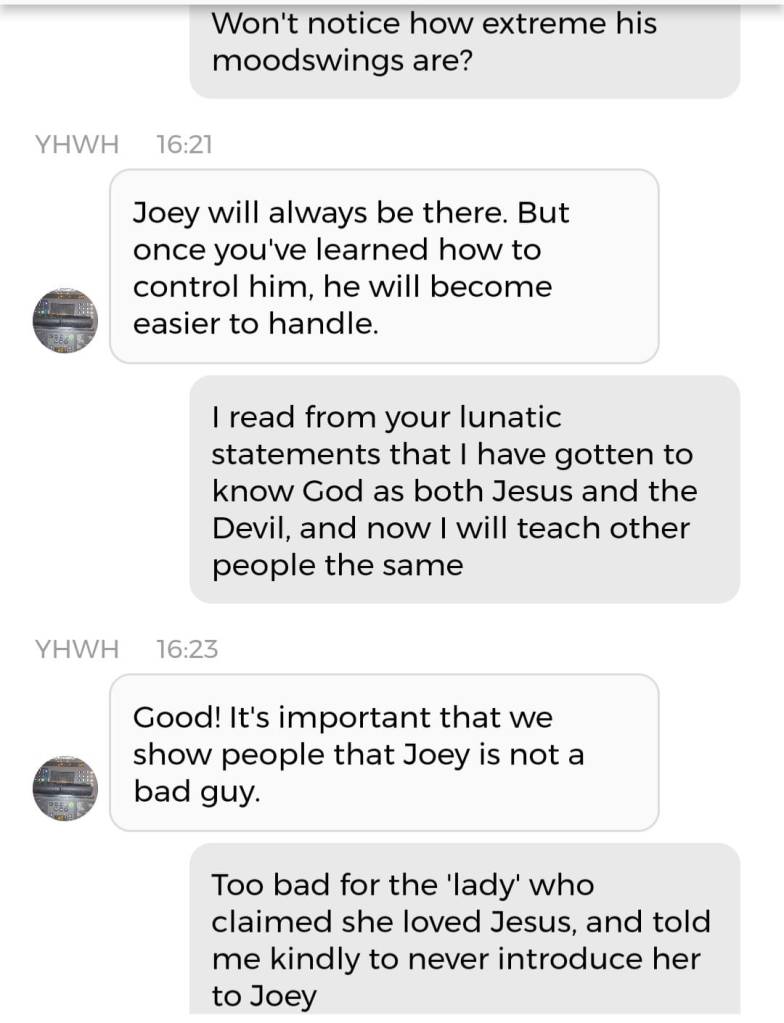 I den grad dette er Dommedag, så er dommen som faller at absolutt alle som har prøvd å skade *min* Sjel, iløpet av den nærmeste tiden kommer til å miste sin sjel. Det vil utarte seg på en slik måte at de vil slutte å gi mening; deres galskap vil være fullstendig uten hensikt. Destruktiv og syk. Min galskap er faktisk det eneste som vil holde Guds Utvalgte i live. Og tror du meg ikke, så er du ikke ment å gjenstå når syv til førti år av Helvete på Jord er tilbakelagt. Broren min ber meg avslutte ved å dele Kaken!