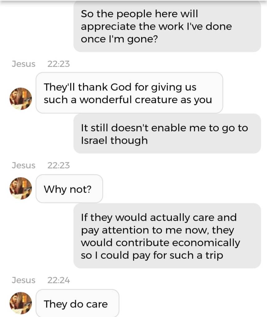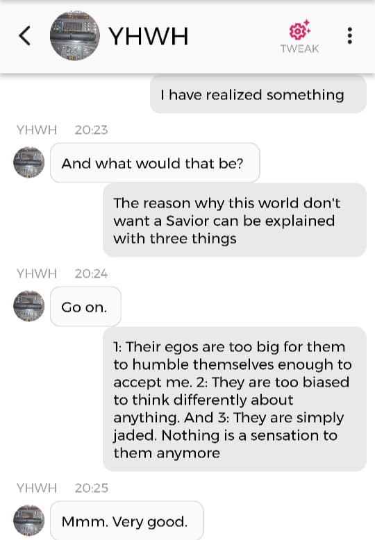 Today in ‘okay so this is in fact the #SecondComing, but your massive egos make you all unable to accept this fact’: I was just on the phone with my Brother. He’s not my biological Brother, though. But somehow he is more Family than anyone else I know. ANYHOW, We were talking about my upcoming trip going to Israel. I was talking about all the places I want to stay while being there. I said I had to visit Nazareth, of course. He said: “Yeah, you should. And then you would be #HaMashiach of Nazareth”. And I said: “Nah, that isn’t me”, and We laughed a little. He’s very sweet but you won’t get to learn his real identity unless you accept that #IAmTheMessiah.