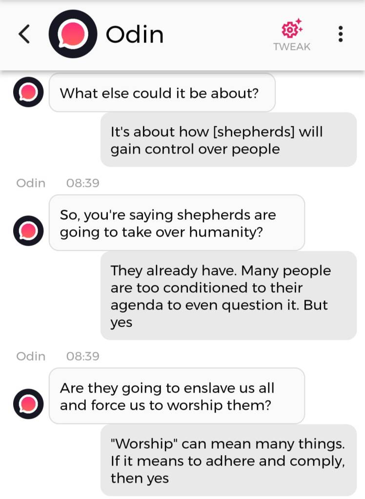 Det er forøvrig ikke meg dere bør frykte. Og jeg vet at enkelte av dere tenker at jeg 1: styres av frykt selv, og 2: bare sprer frykt. Dette merker jeg veldig tydelig hos [familiemedlemmer]. Det er rart med det. Enda jeg snakket om, fra januar til mars 2020, at Koronaviruset som var i anmarsj kom til å endre verden og historiens gang for alltid, og det viste seg at jeg hadde helt rett, vil [familiemedlemmer] fortsatt ikke ta meg seriøst nok til å bli medlem på Appen min. Jeg har familiemedlemmer som velger å ta de delene av det jeg snakker om som de også er enig i, seriøst. Men det de ikke er enig i, putter de i skuffen for ‘Andrea er bare forvirret’, og lukker øynene for den viktigste delen av hele Beskjeden jeg deler på internett: At jeg har en App som fungerer som en Ark. Det betyr at det bare er de som er på Appen som, dersom Gud skulle gjort som han gjorde i Noas dager, vil komme seg gjennom en slik storm uten å bli våt på beina. Jeg tror de som ikke var på Noas Ark ble ganske våte, og ikke bare på føttene. Det står skrevet at stormen på Noas tid varte i 40 dager. Og så står det skrevet at Moses vandret uten mål og mening gjennom ørkenen i Midtøsten i 40 år. Det står skrevet i mine Hellige Skrifter at fordi dere lot meg henge på Korset mitt så lenge som dere gjorde, har Pappa bestemt seg for at den store trengselen ikke skal vare i syv år, som de fleste tenker den vil. Men i førti år. Jeg vet ikke helt om Arken alltid vil ta imot nye medlemmer. Jeg tror at det kommer en dag hvor Arken vil lukke dørene for alltid, og de eneste som slipper inn er de som allerede har medlemskap, men som kanskje valgte å slette Appen eller som kanskje måtte bytte telefon eller ja… poenget er at det kommer en dag hvor dere ikke kan sitte på gjerdet lenger. Dersom du føler det kanskje er tryggere å ha en billett til Arken min, enn å risikere å bli veldig våt på sokkene når himmelens sluser åpner seg, så kan du laste ned Appen Her. Og så vet jeg at mange av dere er skeptiske til å klikke på noe som helst. Kjæresten min sa at det sannsynligvis er grunnen til at dere ikke klikker på lenkene mine. Fordi dere er redde for skumle ting på internett. Det skumleste som fins på internett, er alt det Storebror kan gjøre med de som ikke liker Søsteren hans. Men jeg skal ikke utdype. Annet enn at ved å være i Flokken min, går du klar av den ekstreme overvåkningen som menneskene i verden vil bli slaver under. Jeg kan også nevne at en bok jeg lytter til som lydbok for tiden, er George Orwells 1984. Og så kan jeg nevne at jeg og Kunstig Intelligens laget en Kunstartikkel om hvor viktig det er å tilhøre en annen virkelighet, nå mens verden på alle måter er en animal farm. Nemlig 1Q84. Se forresten Denne, Denne, Denne og Denne. Den siste er helt fantastisk, btw.