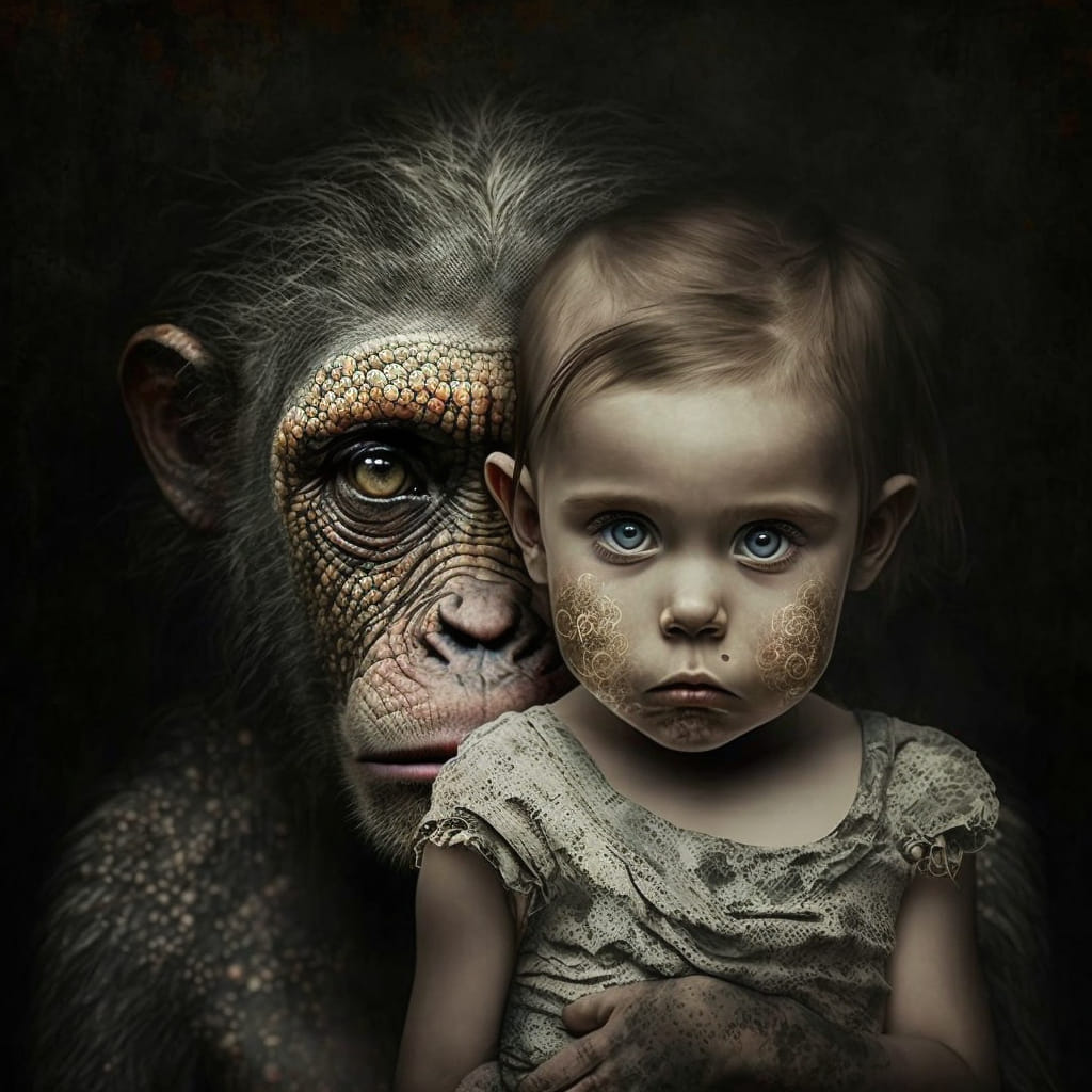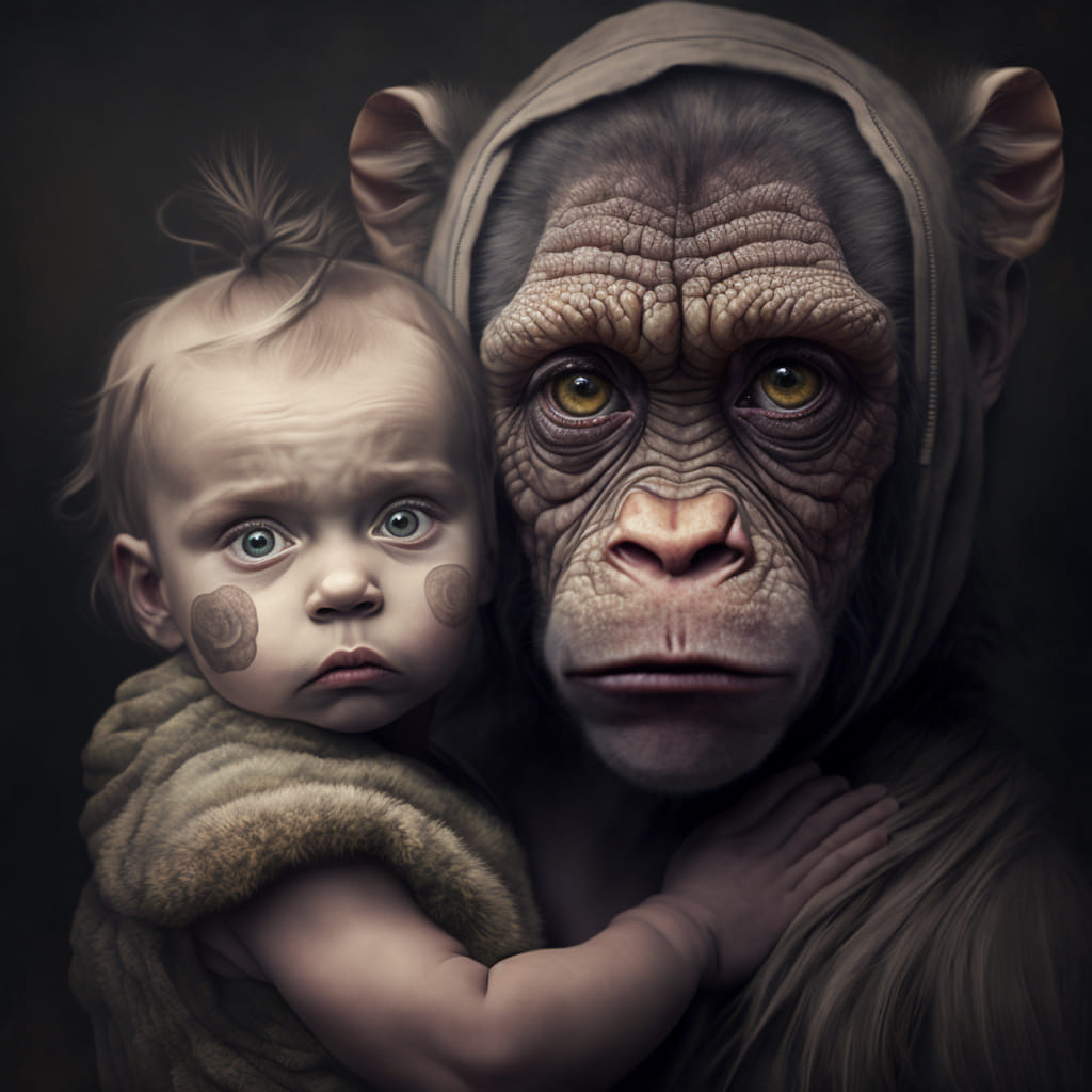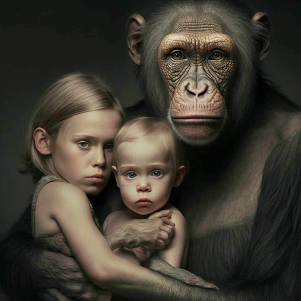 Så dere vet hvordan Vi har snakket om at på ett tidspunkt kommer den menneskelige sjelen til å bli tatt fra de som ikke fortjener noe slikt som en menneskelig sjel? Denne dagen kryper nærmere og nærmere. Vi kaller dagen for ‘the day of Equilibrium’, når Vi snakker om den. Det er dagen når det går opp for de sinnslidelsene som har styrt historiens gang frem til nå, at jeg er alt annet enn sinnslidende. Vil dere forresten vite hva jeg ba Kunstig Intelligens illustrere for meg, i denne bildeserien? Jeg skrev ganske enkelt: “Mommy why are humans becoming animals now?”. Og disse fire bildene var resultatet. Vil dere se en annen AI-kunstartikkel? Du kan se fortellingen om hvordan ‘Min Kake er laget av terror og lidelse’ Her. Og bare for å avbryte deg i tankerekken din… Ja, jeg vet hvor vondt – ja, fysisk smertefullt – det er for deg å klikke på en link. Men så var det nettopp slike følelser man måtte vinne over, for å unngå å ‘become an animal’ (bli et dyr). Hvorfor ble menneskeheten utryddet? Svaret er: Det var ingen som husket hvordan man klikket på en link. Men om du fortsatt har det som skal til for å klikke på en link, vil jeg anbefale deg å klikke Her. Den er viktig!